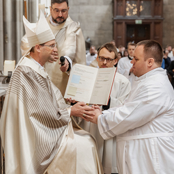 Am Samstag wurden in der Votivkirche in Wien sechs Weihekandidaten zu Diakonen geweiht. Die Weihe spendete Weihbischof Stefan Turnovszky.